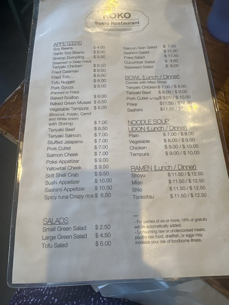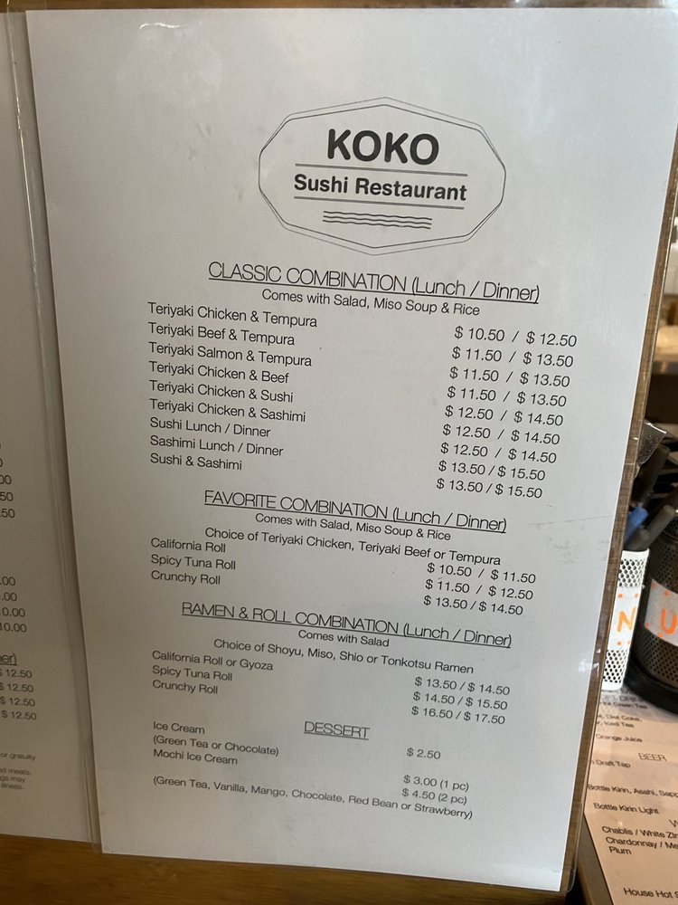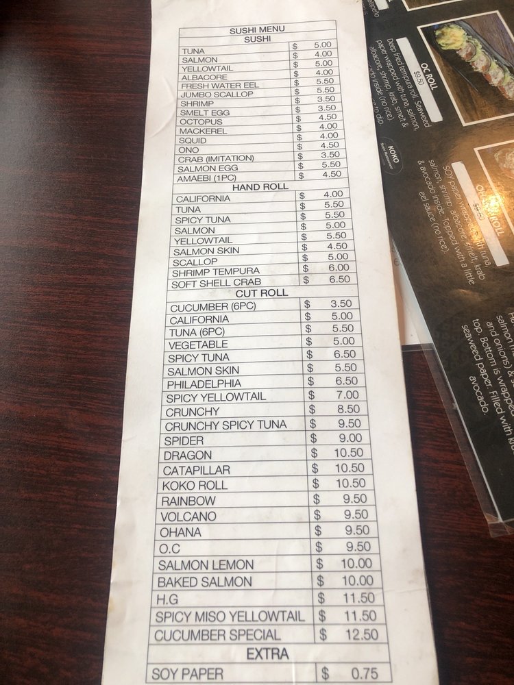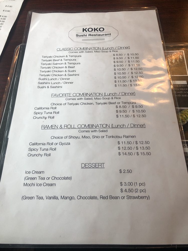 Koko Sushi Menu